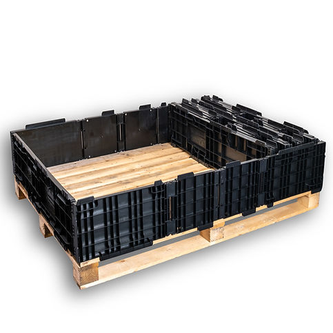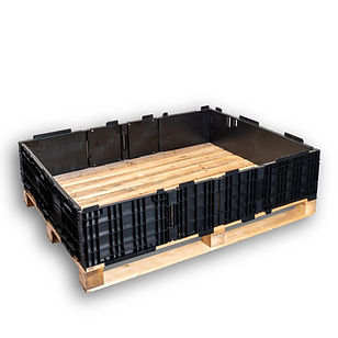 Pallet collars are an accessory to flat pallets, offering a more efficient packaging solution than traditional wooden boxes. They consist of 4-6 panels which are placed on top of wooden or plastic pallets, transforming them into complete storage or shipment containers.