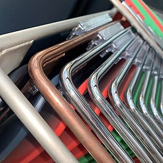This variation features an easy-to-clean plastic seat and copper metal frame. Available in red, green, blue, black, and grey.