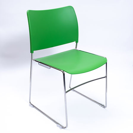The classic sled frame is made from high tensile 12mm steel wire coated with chrome. The contoured seat and back are moulded from polypropylene with a matt finish. The linking feet and stacking blocks are clear polycarbonate. All the components that make Datum can be separated, identified and recycled because take our environmental responsibility seriously. To save space, up to 40 chairs can be stacked on a trolley 2 metres high.