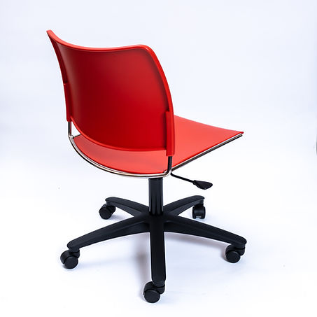 This variation features an easy-to-clean plastic seat and swivel base. Available in red, green, blue, black, and grey.
