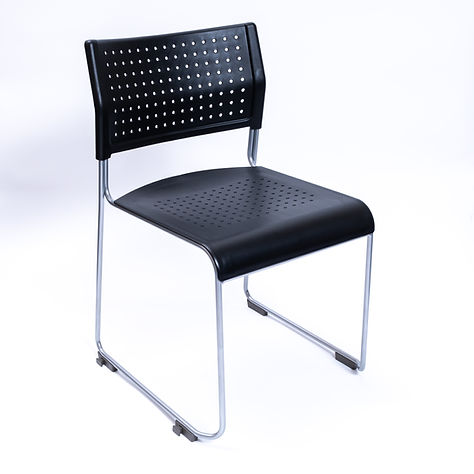 This chair is supplied with a black seat and back, with either a silver or chrome frame.
